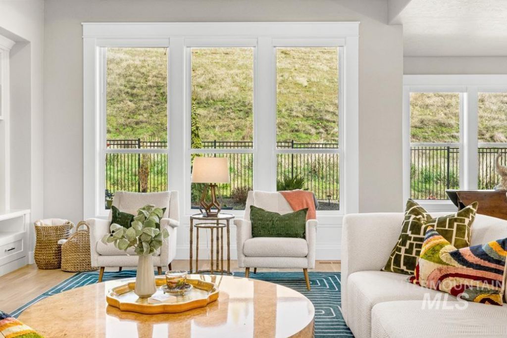 Set on a premier lot in Cartwright Ranch, this single-level home is surrounded by open space with no direct rear or front neighbors, providing fabulous peace & privacy. Near the end of a cul-de-sac & hugged by hillsides, it is the perfect place to rest, recharge & be inspired by the Idaho lifestyle & landscape. Engineered hardwood floors, tall ceilings & a split-bedroom layout create a sense of space & ease. The kitchen is designed for gathering, inviting morning chats & evening conversation while a meal is made. Featuring quartz counters, generous island, Bosch appliance suite, & walk-in pantry. The homes elegant interiors orient toward views of the backyard & land beyond, drawing the eye outside. The primary suite offers 2 walk-in closets & en-suite with dual vanities. Additional bedrooms are well-sized. A dedicated office with closet can serve as a 4th bedroom. Upstairs, find a bonus room & half bath. The outdoor living is just as pleasant & intentional, with a covered patio & pergola, both with roll-down shade screens. The three-car garage includes built-in storage. Cartwright Ranch offers immediate access to Ridge to Rivers trails, as well as a community centered around neighborhood parks, playgrounds, pool, & fitness center. Where life & leisure blend into the foothills ? far enough removed from the city, yet just 10 minutes to the North End. Within Boise High boundaries.
