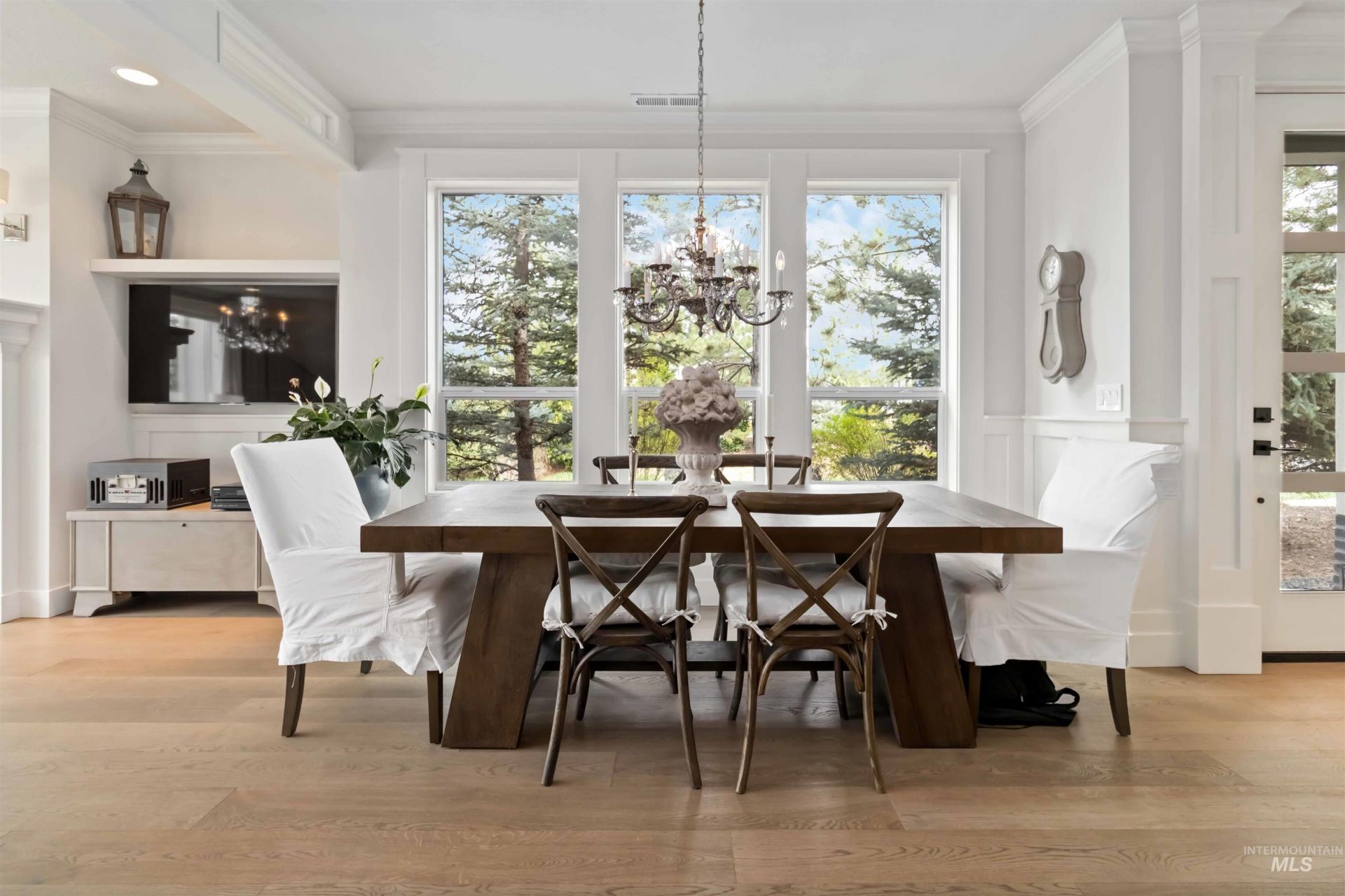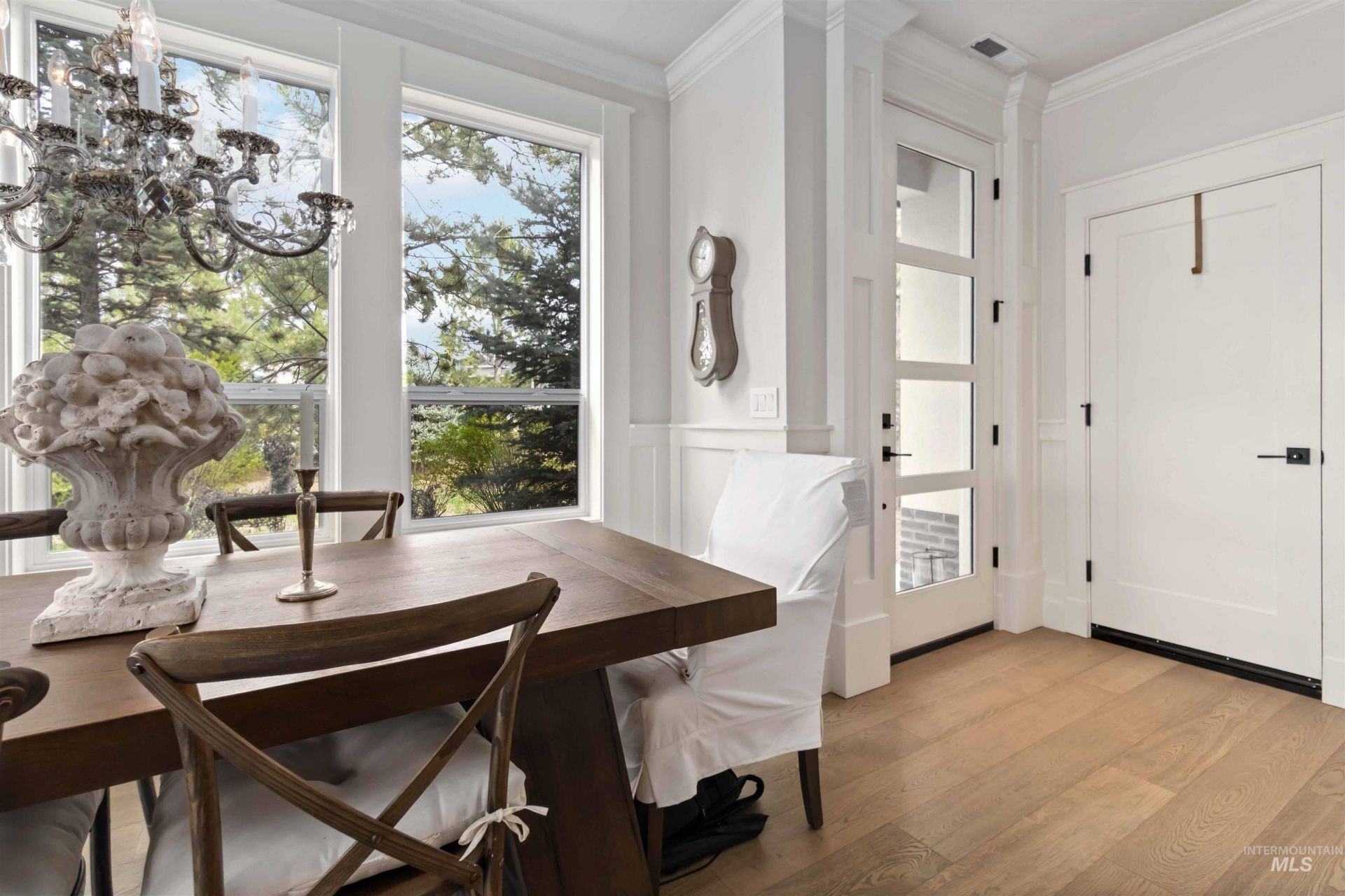 Elegant and luxurious, with a beautiful interior designer flair, this stunning custom townhome greets you with warmth and wow! Built by Todd Campbell Custom Homes and located in the prestigious Lakemoor community in Eagle, ID. Enjoy style and comfort at its finest! Exceptionally detailed throughout, with numerous owner upgrades, this home has been meticulously kept. The kitchen is tastefully, perfectly designed, including a breakfast bar with pristine white quartz counter tops. The bold, rich cabinetry, with accent lighting, contrasts perfectly with the white tile backsplash and glass door walk-in pantry. The formal dining area with a window view, enhances the overall attractiveness and pleasing functionality. Enjoy the warmth of two beautifully built custom fireplaces, one in the great room and one outdoors, for relaxing, gathering and entertaining. A beautiful half bath provides convenience on the first level. The second level includes a stunning primary suite with a walk-in closet and private balcony. Pristine primary bathroom with dual vanities, walk-in shower, and gorgeous marble tile flooring. Two additional bedrooms and a full bath are complimented by a lovely glass door, hallway display cabinet with accent lighting. Two car garage has a custom epoxy coated floor. Community amenities include swimming pools, walking trails, ponds, pickle ball and tennis courts. Welcome home!!