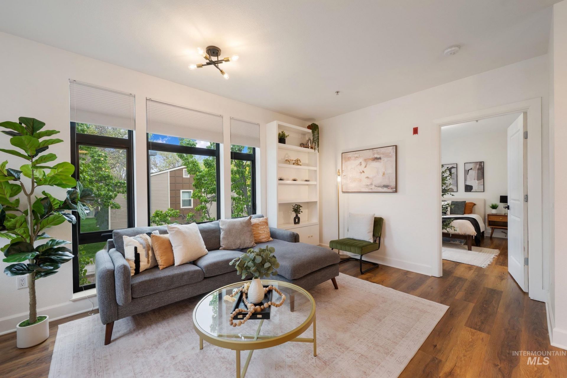Perfectly positioned in a prime downtown Boise location between the energy of the city and the calm of the Greenbelt, this thoughtfully designed condo offers a wonderful balance of chic style and livability. Inside, the floorplan makes exceptional use of the square footage, unfolding into a cohesive great room where natural light and an intuitive layout create a sense of openness. The kitchen anchors the home with a generous breakfast bar, connecting to the inviting living area and an outdoor balcony that feels like a peaceful haven above the city. The bedroom is notably spacious with its own private balcony, while a well-integrated office nook provides dedicated workspace without interrupting the flow. Additional features include deeded secure parking, storage, and access to a communal rooftop patio with BBQ and sweeping city views. This condo is ideal for those seeking a modern and simple, but refined take on downtown Boise living.