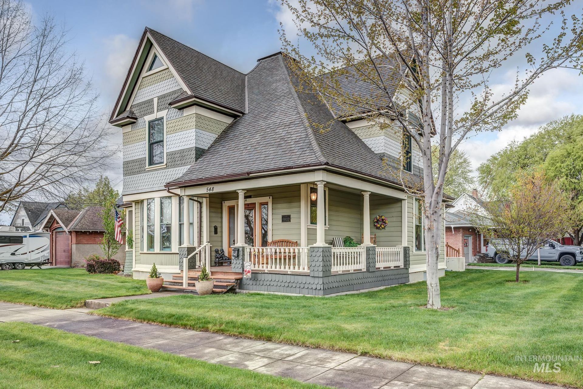 Rare opportunity to own one of Weisers pristine historic homes; the Sommer House, built in 1899 and designed by Tourtellotte & Company. This home has been meticulously renovated while perfectly preserving the architectural design & features of yesteryear. You will be in awe of the beautiful wood work throughout as well as the perfectly designed kitchen & bathrooms; all designed to feel as you are in the home as it was originally intended. The downstairs features a sprawling living room w/adjacent dining & direct access to the screened in porch, while the beautifully designed kitchen features lovely built ins, stainless appliances, and honed granite countertops. The main floor also features the master suite w/ walk in closet & ensuite bathroom. Walk upstairs to find an additional large ensuite bedroom with a separate sitting area, large bathroom, and two additional bedrooms. The meticulous maintenance continues outside to this courtyard style backyard with paver patios, deck w/ retractable awning, raised flower beds, green house, wrap around porch and more. There are two separate garages on each corner of the property for parking, storage, and work space.