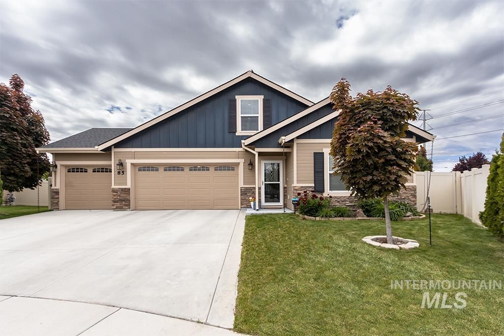 Prepare to be moved! Top to bottom interior remodel. All new sinks, granite countertops, faucets, toilets, flooring and paint throughout. Outside has been expoxied. Downstairs master with dual sinks, deep soaker tub, step-in shower, and walk-in closet. Upstairs bonus room converted to bedroom with a full bath that could be a home office or gym. Dual-zone heat & A/C. Open concept living area with vaulted ceilings. Backyard has beautiful low-maintenance landscaping, fruit trees, shed/workshop with electricity, half basketball court with brand new epoxy. Simplisafe home security system installed. Dont miss your chance to live on this beautiful corner lot in a central location of Meridian!